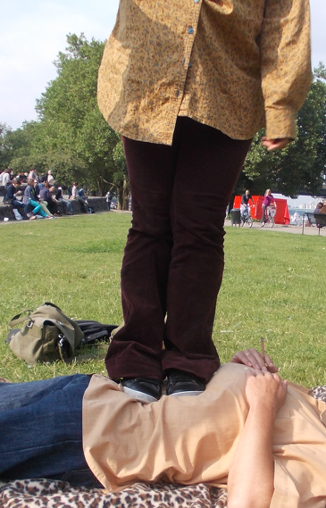 Da kam die Idee, sie hat sich der Human Floor 4 in 1 gebucht und es war ein Riesenspaß. Den Human Floor unter die leiter gelegt und schon stand sie felsenfest, auch tropfte die meiste Farbe nicht auf den Boden sondern auf den Humancarpet. Die Leiter war etwas höher sodass sie die Decke gut ohne Teleskopstiel erreichen konnte. Da sie aber immer mühsam die Leiter auf und ab mußte um die Rolle mit Farbe zu versorgen war es das allergeilste dass diese Leiter mit Unterleger sich von selbst verstellte. Sie wechselte mit Hilfe des Human Floor ihre Stellung "ganz von allein".