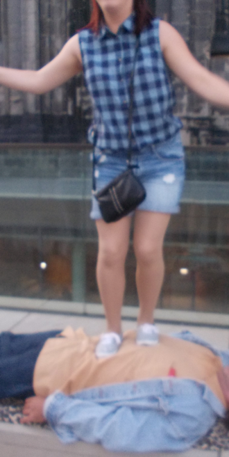 Human Floor liegt auf einer Wiese am Rhein ... Angie und July schwirren aus und motivieren Ladys in der nächsten Umgebung für einen kurzen Besuch auf seinem Bauch. Es wurde keine überredet, jedoch einigen Mut zugesprochen ... Und alle die sich letztendlich getraut haben, hatten sichtlich Spaß dabei :-). Auch am Dom konnten die Damen den Human Floor ausprobieren :-).